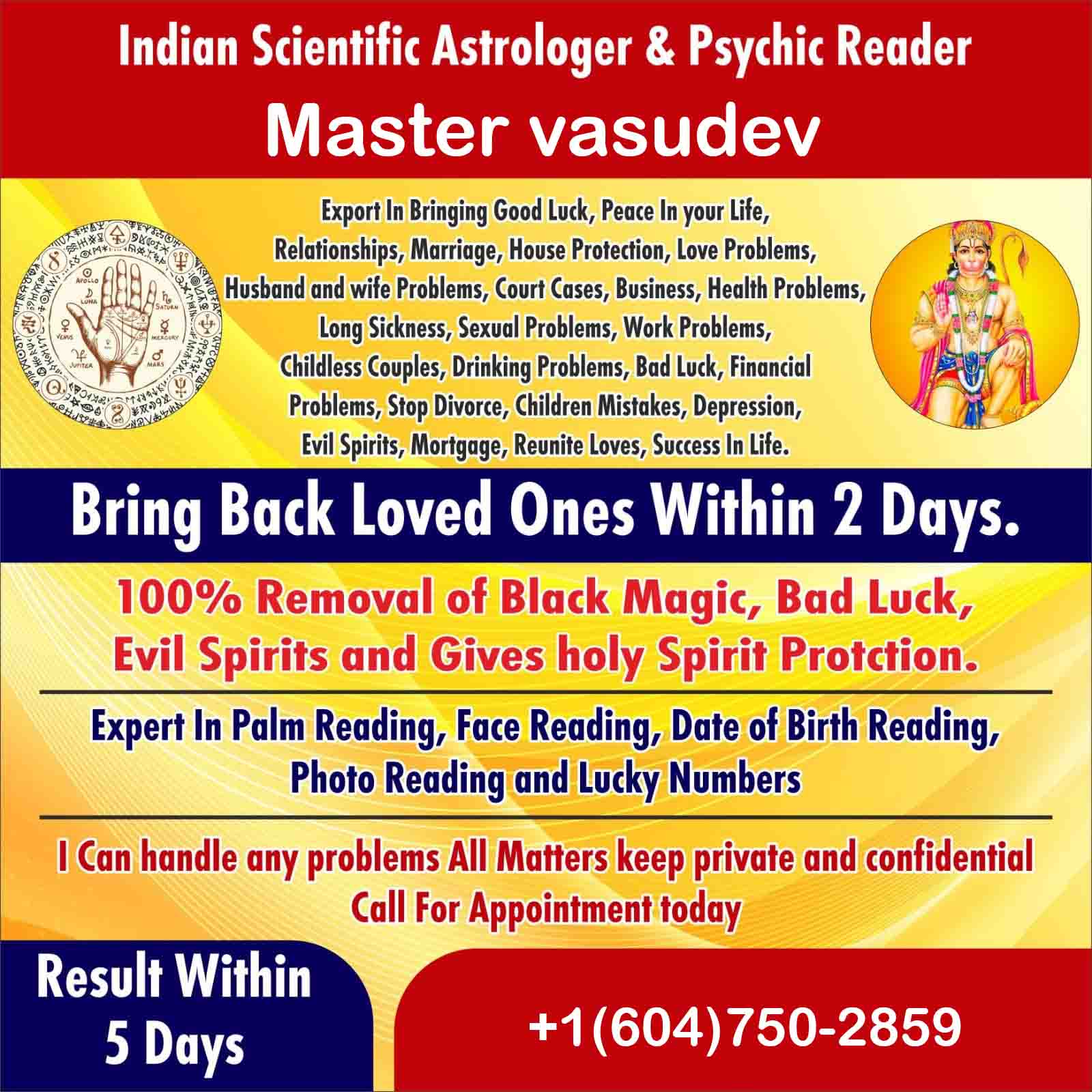 Master vasudev is No.1 Indian Astrologer in Canada. He is a well-known astrologer will make your life free from worries. There are many people that believe in astrology Most people make important decisions by consulting famous astrologers. Astrology today has a great impact on people's lives.